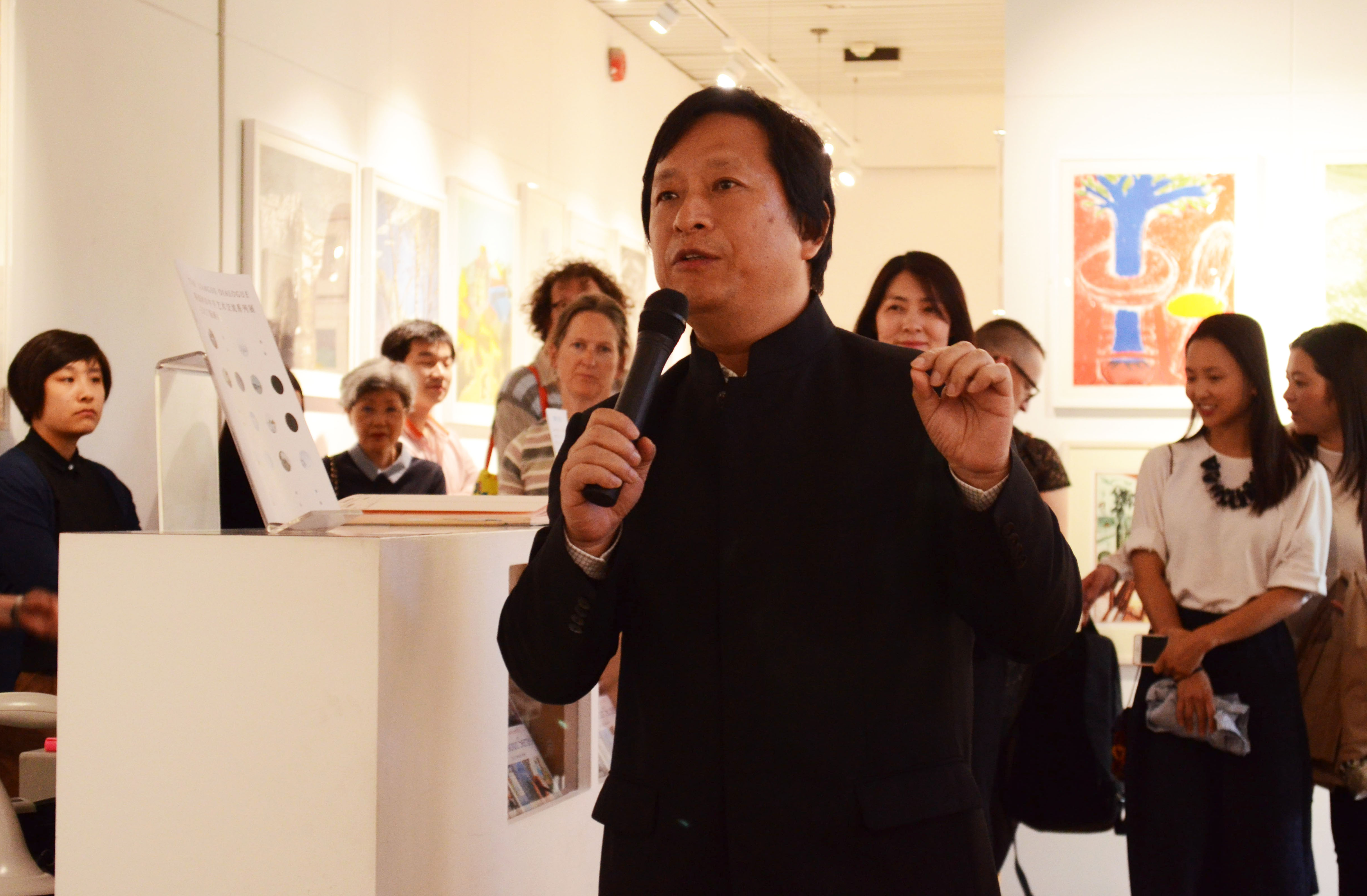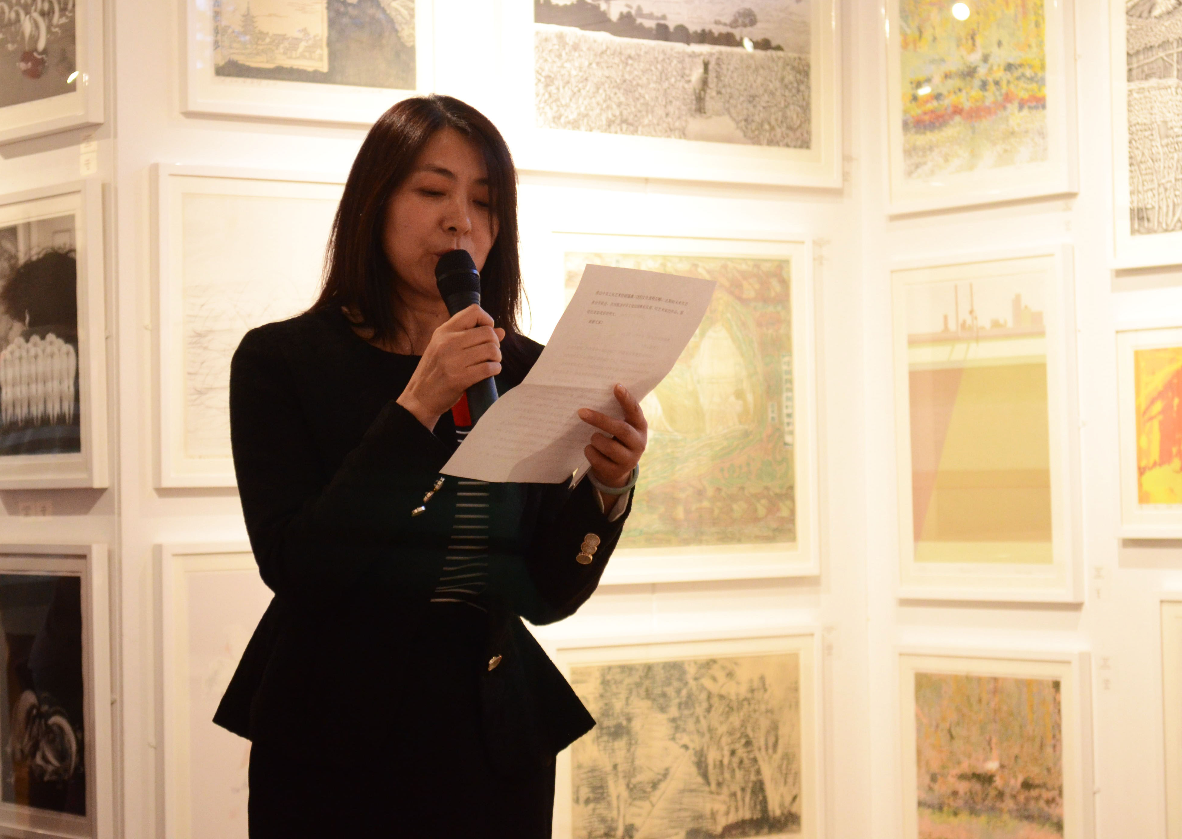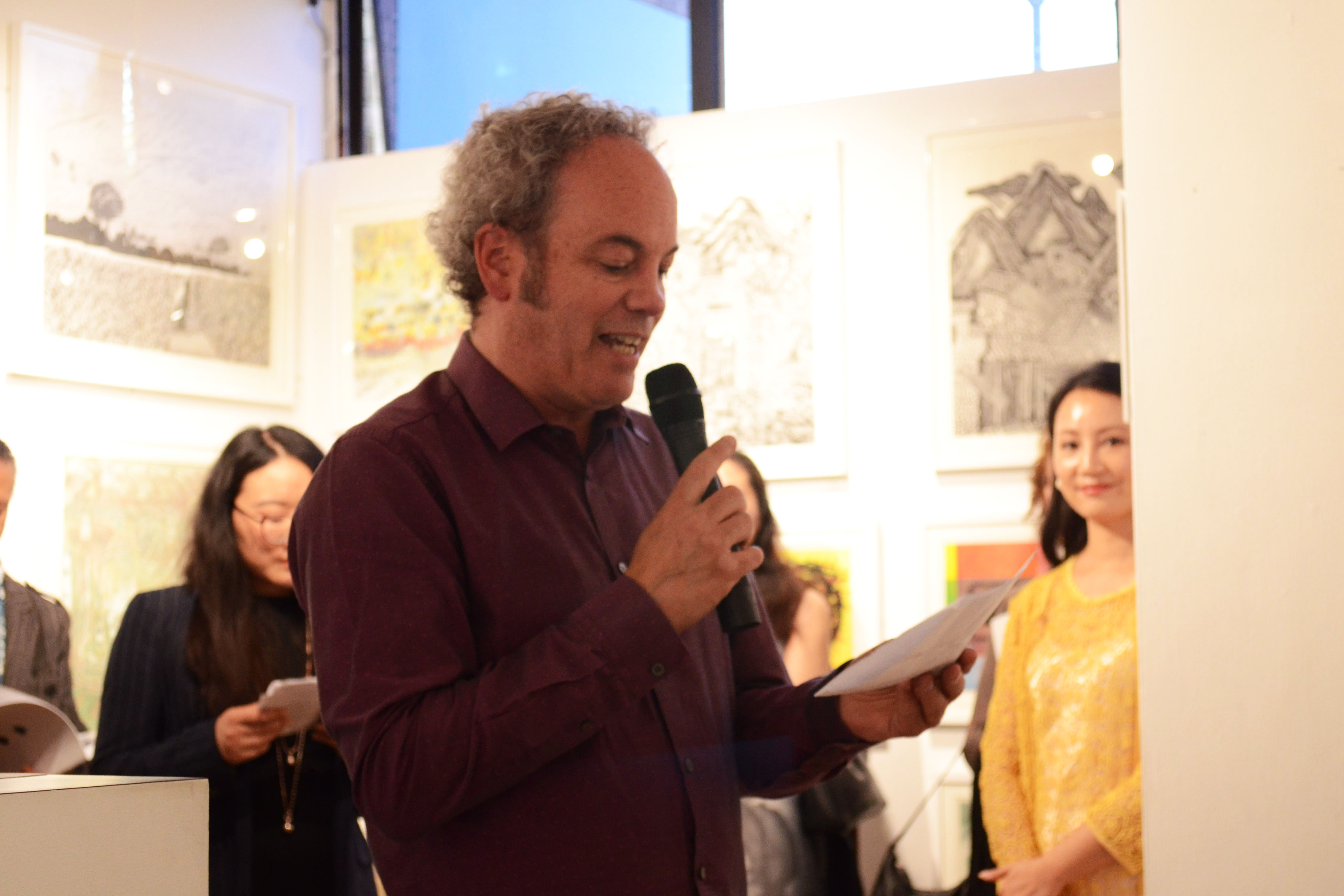 畫展開幕儀式上,英國皇家版畫家協會主席Michael Barratt、江蘇省美術館館長徐惠泉、愛濤文化集團常務副總經理陳云梅分別致辭,并向參展本次版畫展的中英藝術家代表頒發了參展證書。