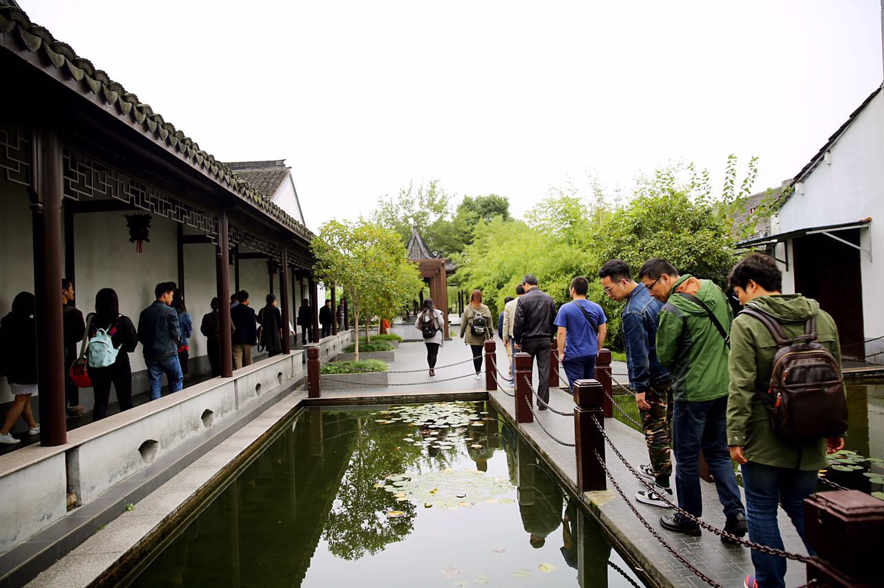 抵達盛澤后,蘇豪傳媒單鳳艷副總經理帶隊參展商參觀非遺宋錦館,零距離觸摸APEC領袖風采,分享國禮之尊。隨后參觀了先蠶祠、華佳絲博園,了解綢都絲韻水鄉,感受中國紡織名鎮,流行面料發布基地對絲綢的膜拜。