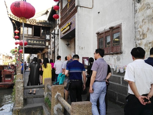5月26日晚間,組織企業家在文化商業街“山塘街”采風。蘇州山塘街是國家AAAA級景區、中國歷史文化名街,曾是明清時期中國商貿、文化最為發達的街區之一,被稱之為“老蘇州的縮影、吳文化的窗口”。企業家在“神州第一古街”尋找靈感。