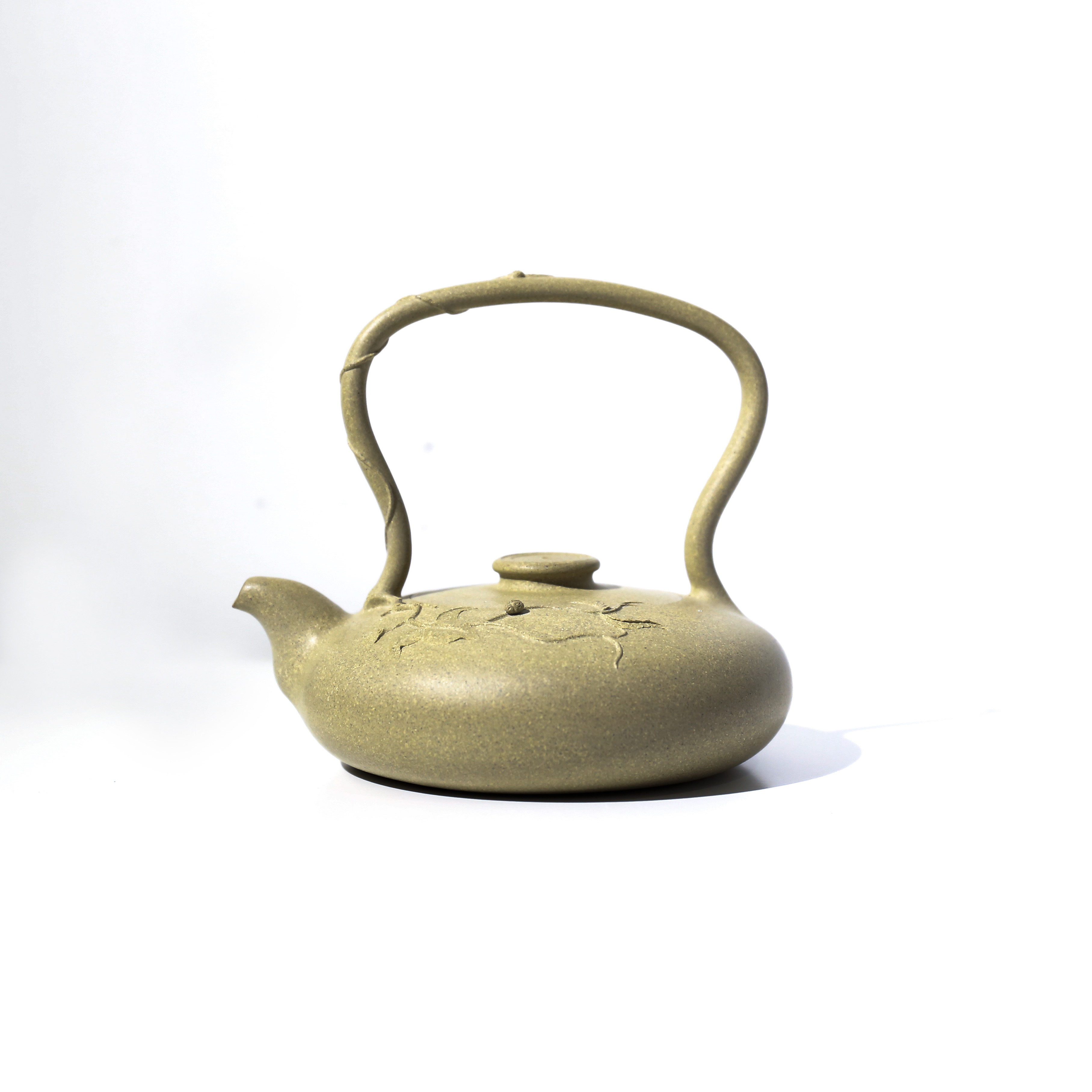《新姿》一壺設計于丁酉早春,設計的靈感來源于一盆案頭水仙。“幽姿冉冉弄晴煙,玉蕤暈碧曉肌鮮。”作品精選黃龍山原礦紅降坡泥料,泥料色澤紅潤,油脂極好。制作時充分考慮三維一體的空間理念,作品的每一個視角都力求把握線條的美感與整體的協(xié)調(diào)性。壺身部分的線條則緩沖流暢,于明暗轉(zhuǎn)折、虛實對比中凸顯出此壺的溫潤、凝重、古雅之風。