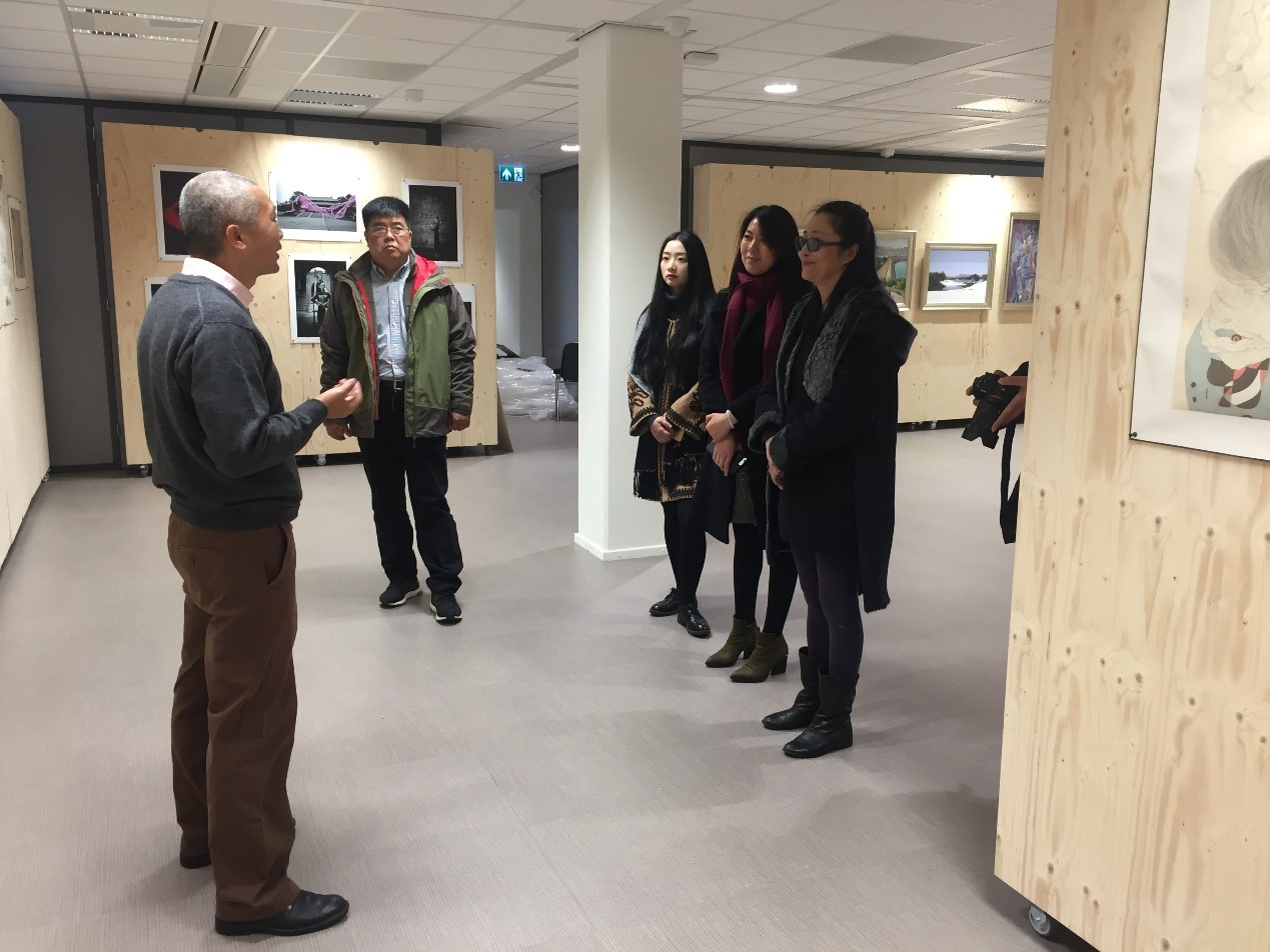 為迎接即將啟動(dòng)的開幕式活動(dòng),團(tuán)隊(duì)的藝術(shù)家們一大清早就來(lái)到海牙中國(guó)文化中心,現(xiàn)場(chǎng)指導(dǎo)作品布展工作,并就海牙中國(guó)文化中心在未來(lái)策展規(guī)劃和開展多種模式聯(lián)合運(yùn)作等方面工作與黃宏昌副主任進(jìn)行了交流,為今后文化藝術(shù)交流工作提出了許多寶貴意見(jiàn)和建議。